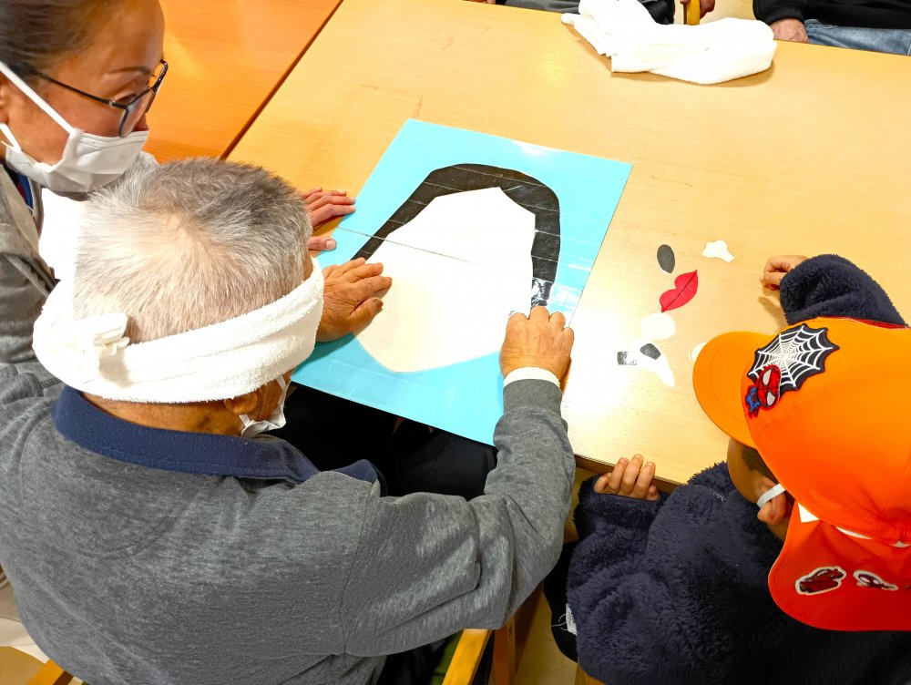 本日は、幼児さん達と都筑ハートフルステーションのデイケアのご利用者さんと伝承遊びをしに伺いました。