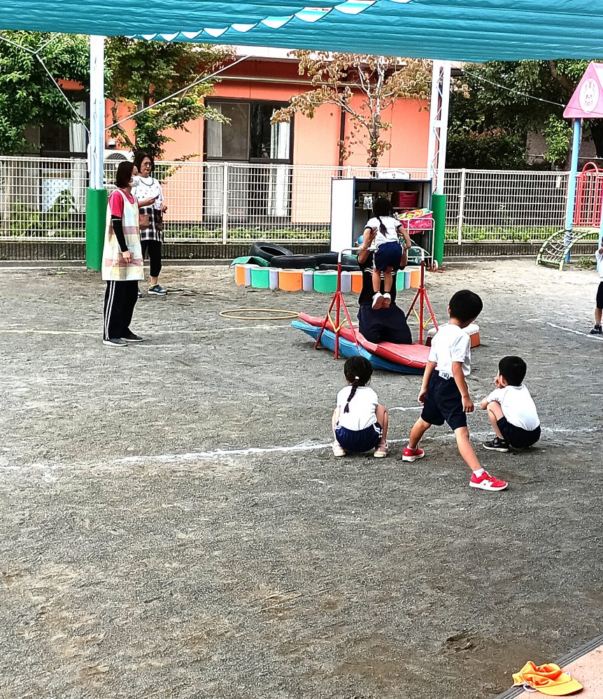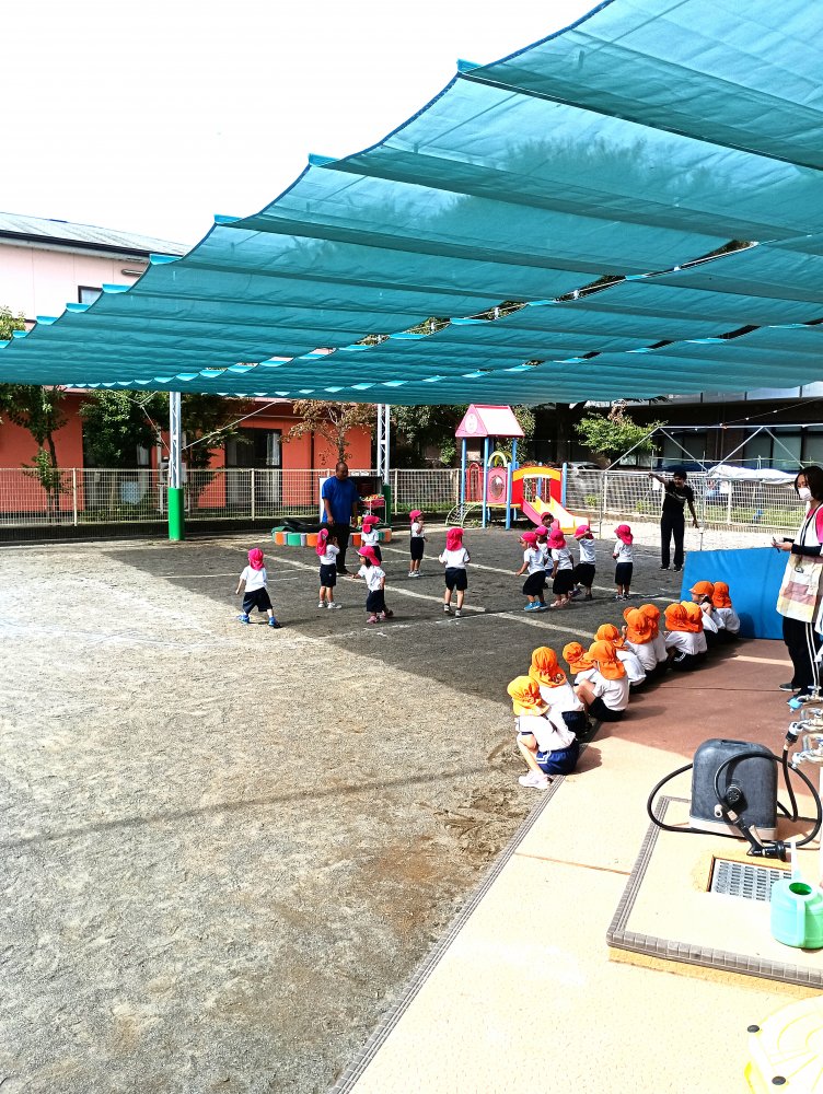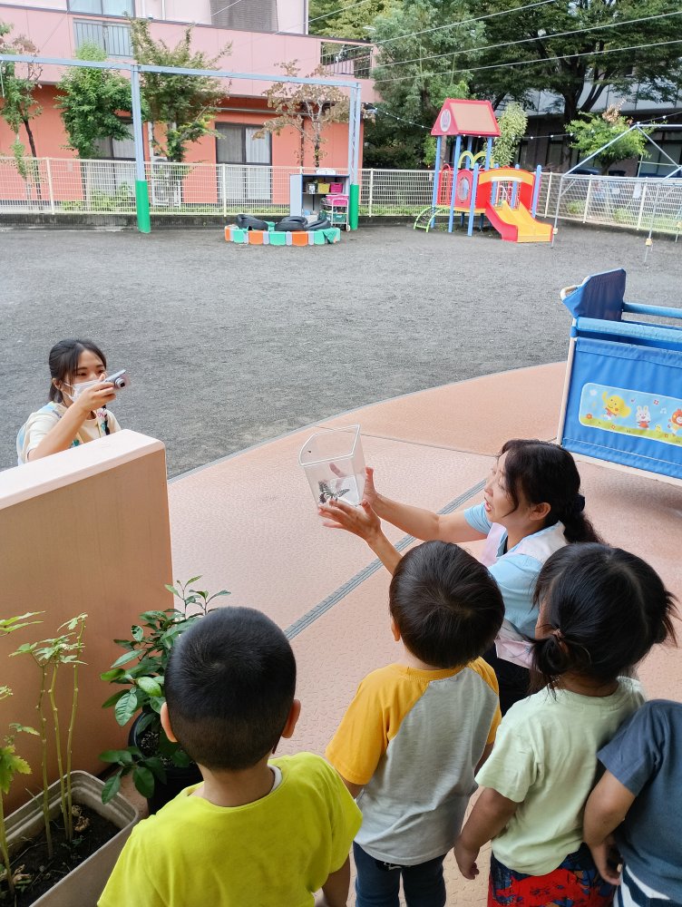 今回も無事にアゲハ蝶が羽化し、外に羽ばたく姿を見ることができました。 乳児クラスの園児さんと空高く舞い上がるアゲハ蝶を見送りました。 最近、園庭周囲でアゲハ蝶が飛び回る姿を見るようになりました。帰ってきて、卵を産みにきてくれているのかな?と思いましたが、クラスの前のプランターで育てている柑橘類の木には無かったのですが・・・、園庭横にある、まだ小さいですが、金柑の木に卵を発見。いつか多くのアゲハ蝶が舞う園庭になってくれれば幸いだと思いました。