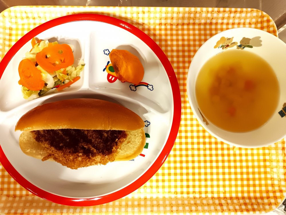 本日の昼食は、ハロウィンにちなんで給食室からは、イベント食、経営者からは、自宅の庭に実った柿を頂き、作ってもらえました。