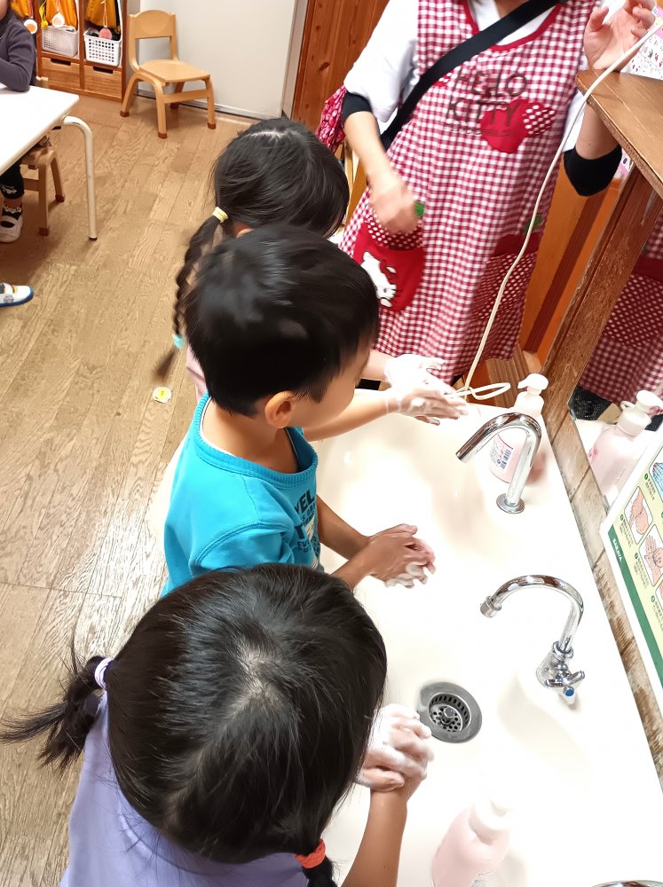リズム遊び、手洗い指導の様子は ☞ ① ② ③ ④ ⑤