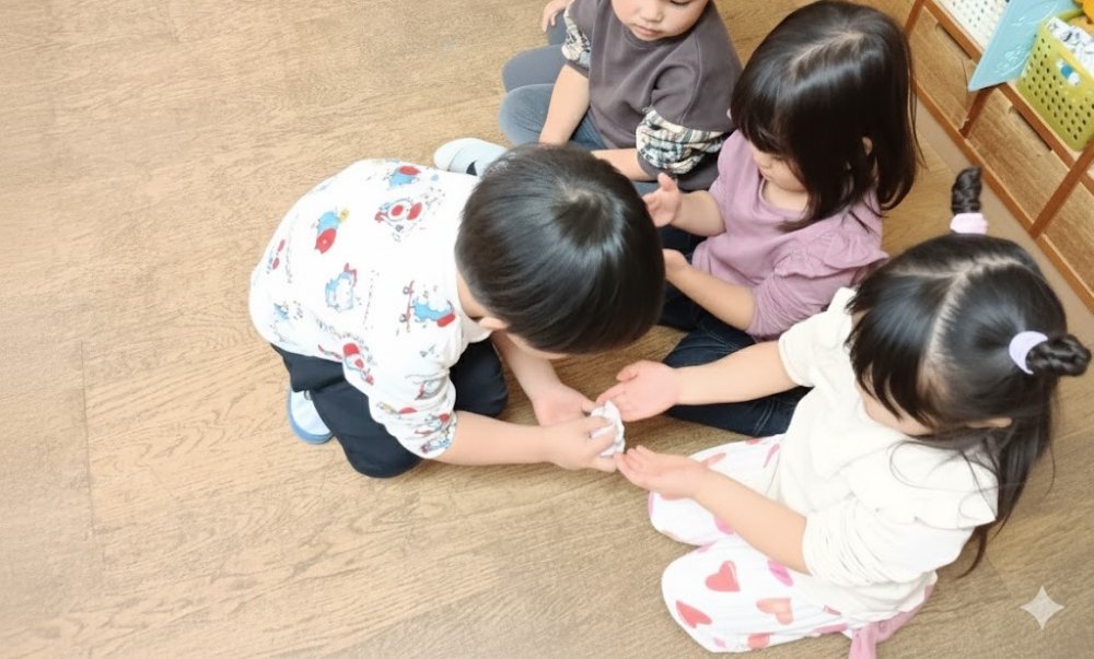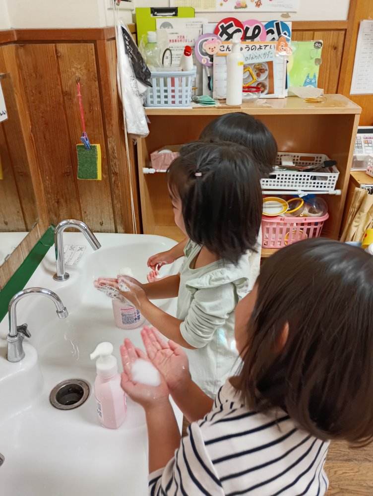 みんな手洗いがとても上手になりました。明日からしっかり洗えると嬉しいです。