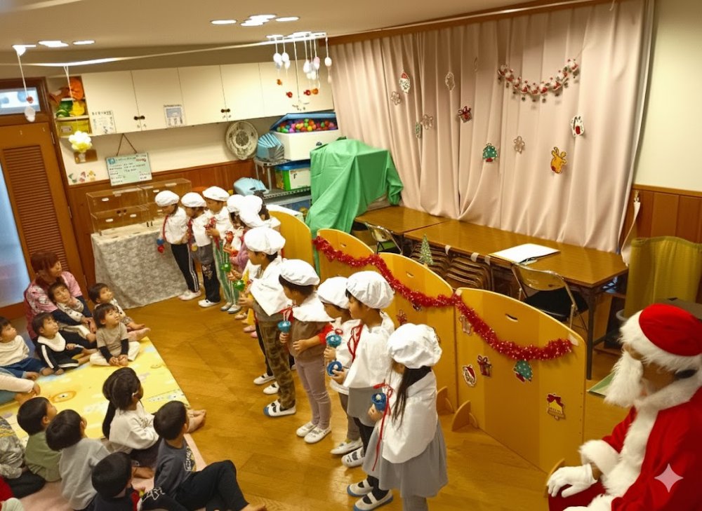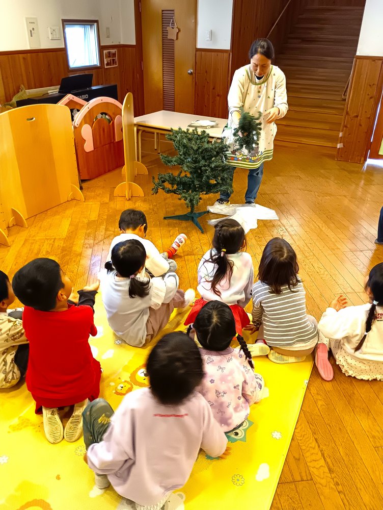 午前中は、園全体でのお楽しみ会を行いました。毎年お願いしていますが、サンタさんが大棚郵便局よりお越し頂けました。